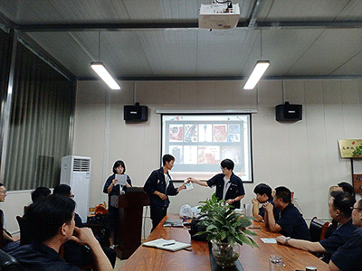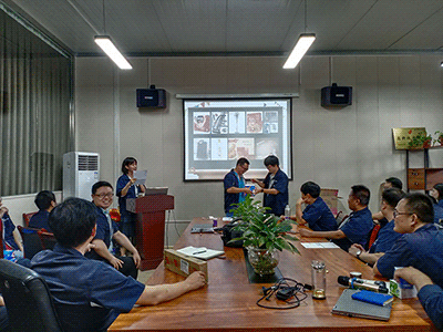 會(huì)議期間員工針對(duì)公司愿景、價(jià)值觀、人才觀發(fā)表自己的理解,并根據(jù)實(shí)際工作舉例說(shuō)明。