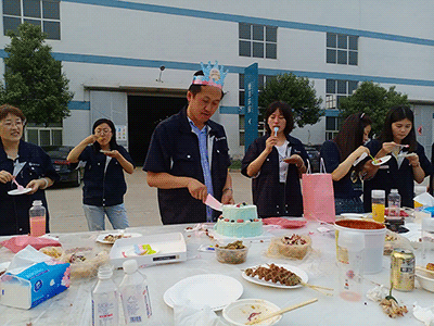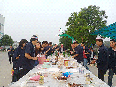 5點(diǎn)整,燭光晚餐環(huán)節(jié),全體成員來(lái)到戶外進(jìn)行自助燒烤,對(duì)過(guò)生日的員工慶祝生日,大家齊動(dòng)手、共聚餐。